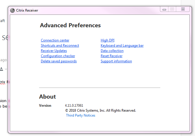 You will see the version number. The version number should say 4.12. If it says 4.18 or is lower than 4.12, you may need to update. (See 'how do I uninstall and reinstall Citrix?' to update your version)