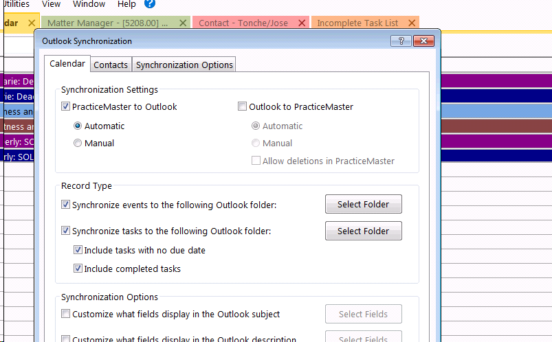 To turn your Outlook to Practice Master Synchronization back on:
